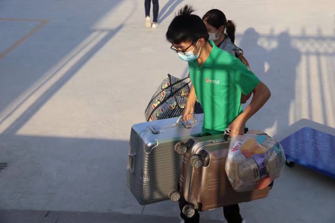 报到大本营处学生会工作人员专人专岗、分工细致,工作有条不紊的进行,园区外面特设立家长休息区,以供家长休息,宿舍园区内,学生会成员为新生搬被褥、脸盆等生活用品,分发宿舍工具,细心解答新生关于宿舍园区水卡、洗衣卡等办理的疑问。在两天的迎新时间内,学生会的每位成员都始终如一的坚守岗位、尽职尽责的完成每份任务,毫不懈怠,给予新生家人般的温暖。