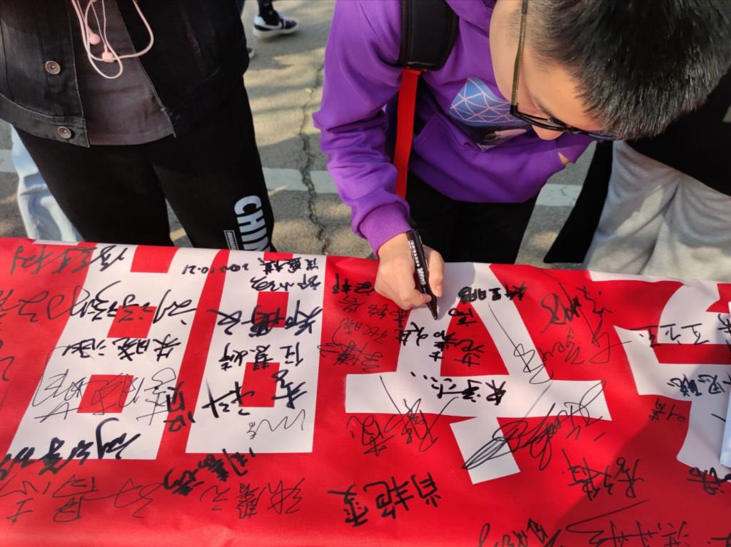 同学在2017级辅导员董青,2020级辅导员田青、张乃宁带领下积极参加。