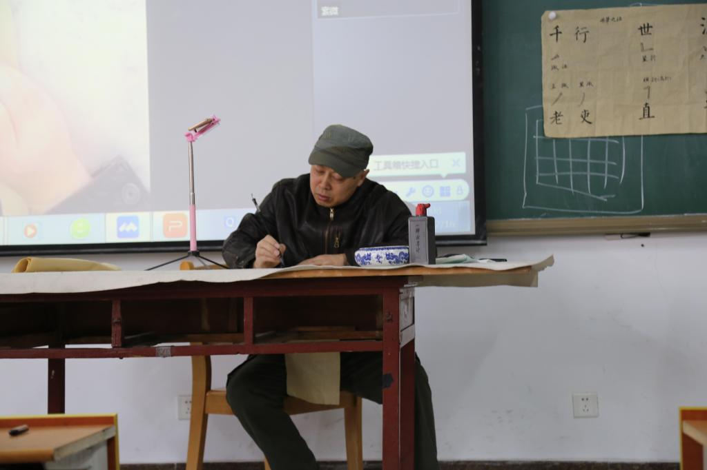 在本次书法讲座中,陈老师向同学们展示了古代书法家的优秀作品,讲解书法的演变历史,并以此为切入点,重点讲解中国传统书法字的结构和规律,指出书写时要注重快慢结合的技巧,停笔顿笔错落有致,笔画轻重讲究和谐;详细讲解了字形笔画结构等,使同学们对毛笔书写有了更深一步的了解,感受到中国传统书法艺术的博大精深。