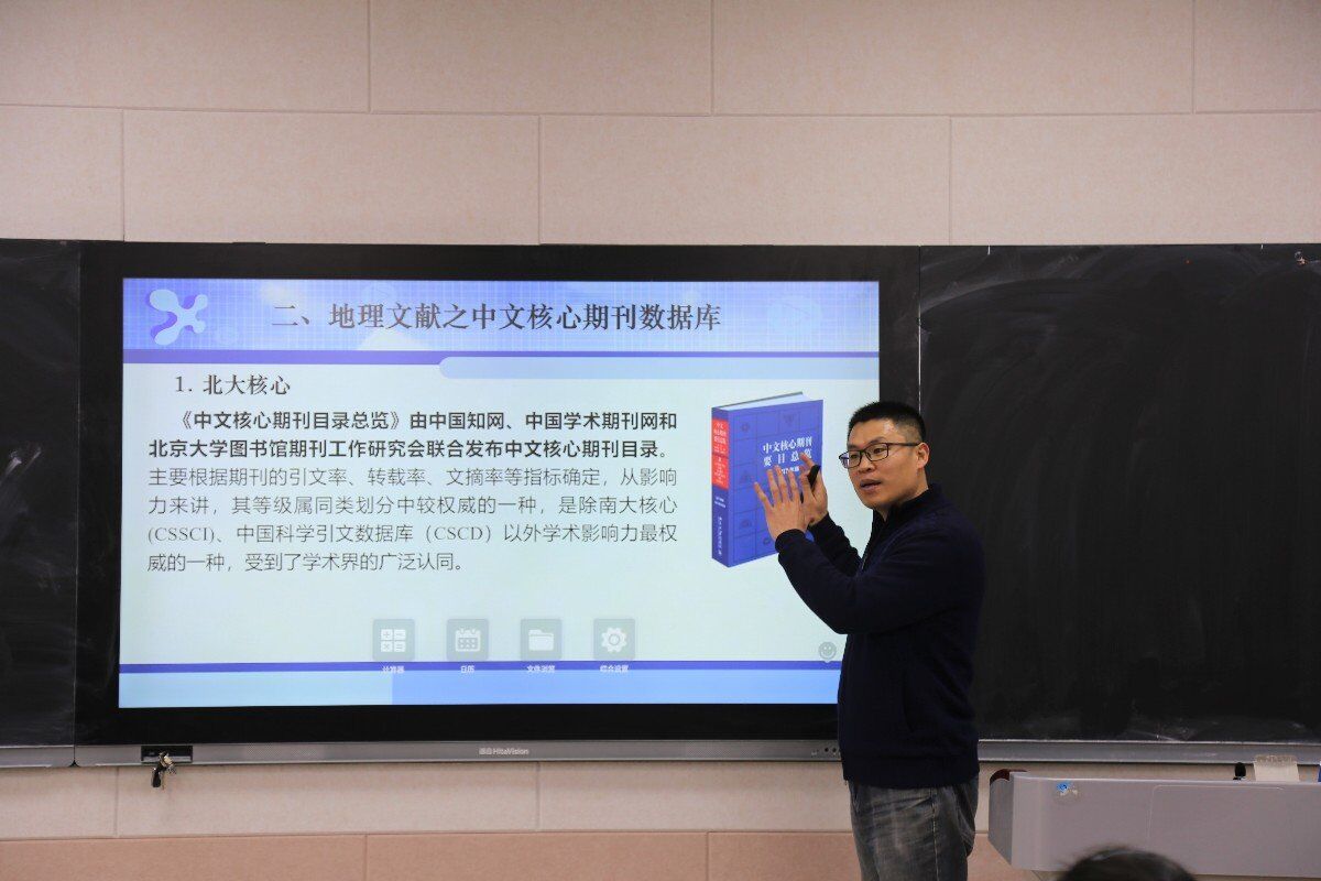讲座伊始,李梅对到场的两位老师表示欢迎,并简介他们的科研方向和在各自研究领域上取得的成绩。此后,张学波为同学们详细地介绍如何做科研以及创新的基础。他以如何完成一篇学术论文为例展开讲解。他指出,作为学术研究者,首先要阅读、掌握大量文献知识,才能以此为基础进行创新。他向同学们介绍了几份具有代表性的地理文献,如:《地理学报》、《地理科学》等。同时,他围绕论文基本构成、写作方法、写作要领三方面对同学们学术论文的写作进行了讲解,让同学们对如何走好科研路有了初步了解。随后,郭浩向同学们介绍了做地理科研相关的软件及专业技能,然后又结合自身经历用风趣幽默的语言讲解了什么是科研,为什么要做科研,以及本科生做科研需要注意的问题。他指出,做科研一定要做到坚持和探索,制定清晰且合理的时间规划,学会积累,做到协调统一,集中且深入。科技引领时代,创新成就人生。两位老师的现场说法,让同学们感受到他们对科研的热爱,激起了同学们对科研的浓厚兴趣。同学们纷纷表示希望加入科研行列,挑战自我,提升自我,将这份热爱一直延续下去。