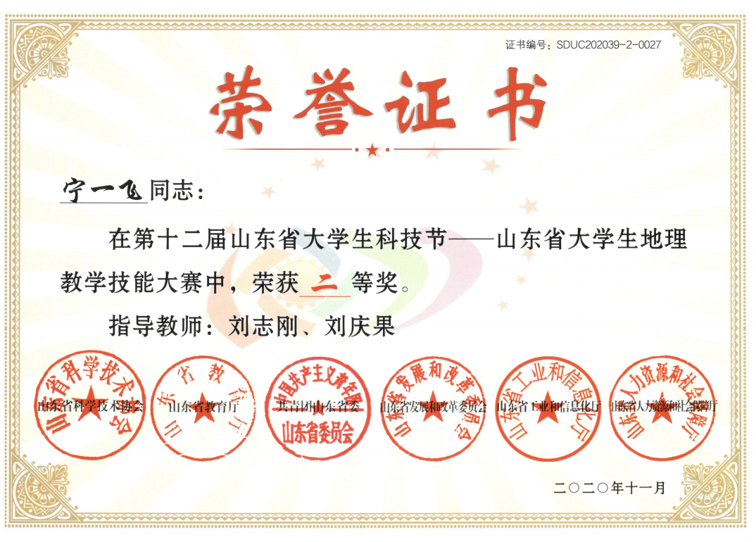 获奖情况:2020年山东省大学生地理教学技能大赛二等奖