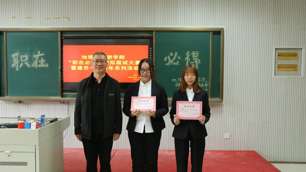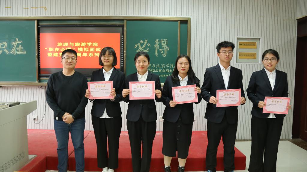 于S218顺利举行“职在必得”模拟面试大赛。比赛邀请到日照天行健物流有限公司总经理王建伟、山东海洋文化旅游发展有限公司景区运营总经理安强、我校管理学院副院长刘金发以及电影天堂