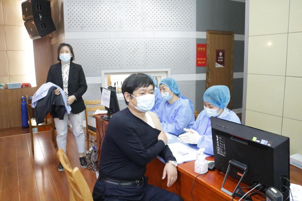 (日照校区)图书馆报告厅开展集中接种第二剂新冠疫苗工作。