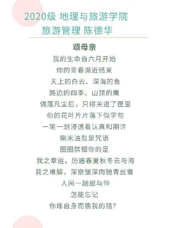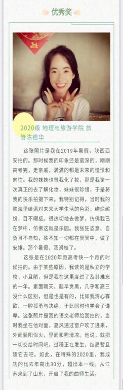 19级地理科学一班韩梦甜、20旅游管理班陈德华荣获优秀奖。让我们一睹她们的获奖作品吧。