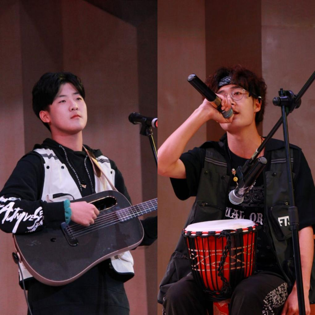 田嘉恒和王宏宇带来歌曲《写给黄淮》,吉他与非洲手鼓的结合别出新意,赢得了在座观众阵阵掌声,最终他们获得二等奖的好成绩。下面让我们一睹他们的风采吧!