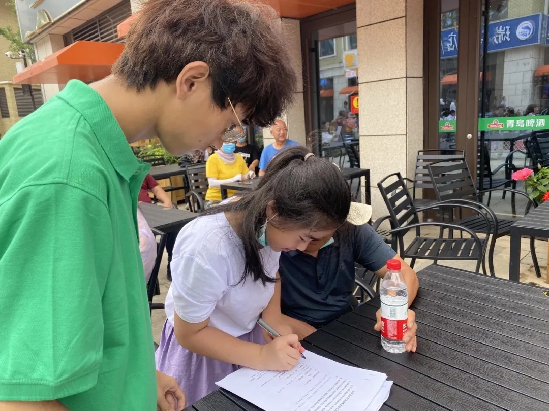 当本队访问餐馆之后,第二段即是发调查问卷。由于在人流量较大的一块区域,调查问卷也易分发。就这块区域,本队完成了65份调查问卷的填写,几乎涵盖了各个年龄层的人,在填写过程中可以发现的是,较为年轻的一拨人,他们对于“水足迹”没有什么印象甚至是毫无印象,而年长一辈可以说是能了解这方面的内容。不过综合来看,其共同点均在意食品安全。