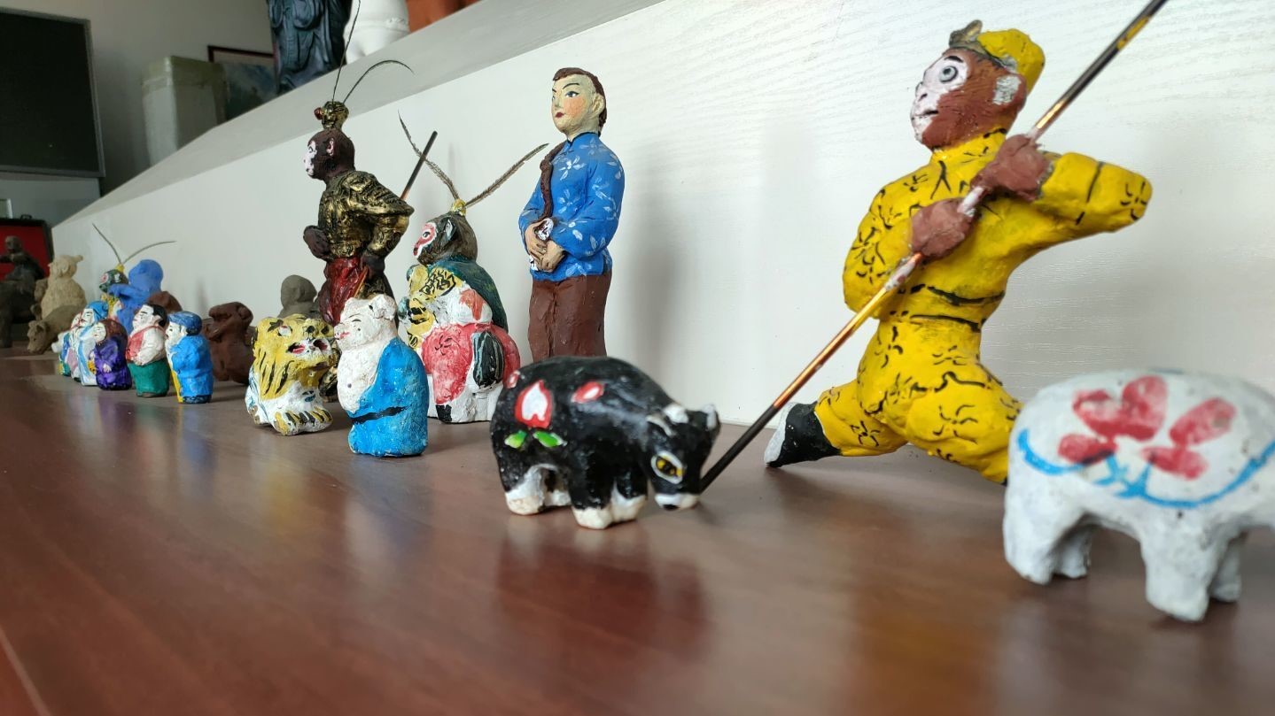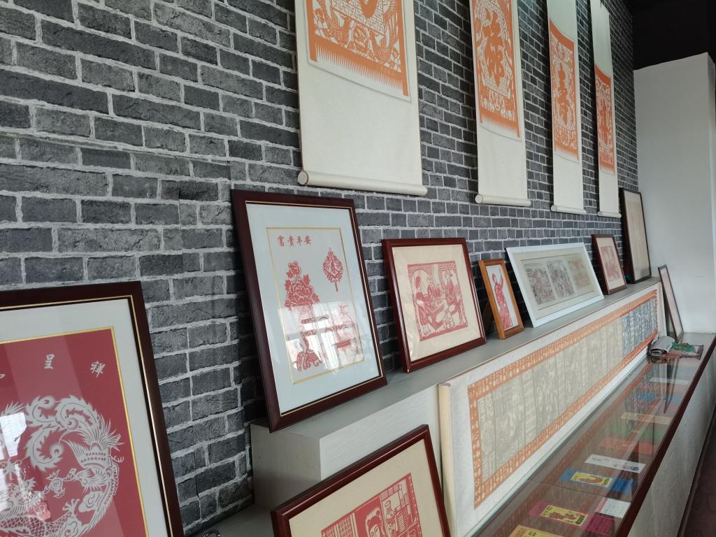 展品中的剪纸、雕塑