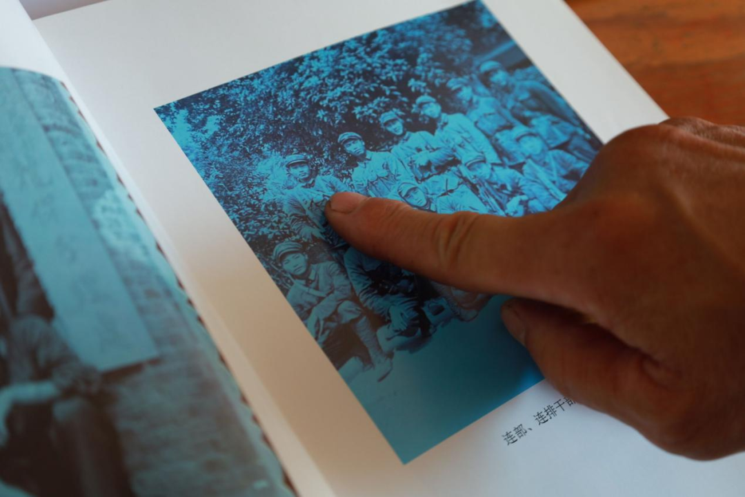 老兵李玉才为红船筑梦实践队成员展示当年的老照片