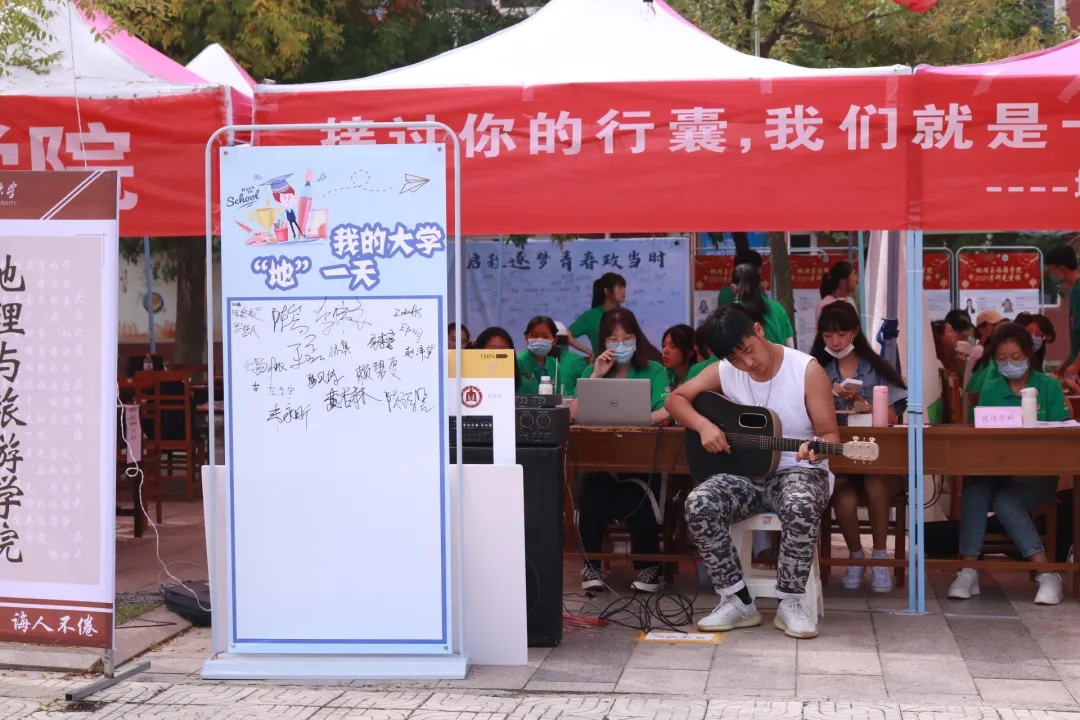 报到大本营处迎新工作人员专人专岗、分工细致,工作有条不紊的进行;学校外面特设立家长休息区,以供家长休息。宿舍园区内,工作人员为新生搬被褥、脸盆等生活用品,分发宿舍工具,细心解答新生关于宿舍园区水卡、洗衣卡等办理的疑问。在为期三天的迎新时间内,学生会的每位成员都始终如一的坚守岗位、尽职尽责的完成每份任务,毫不懈怠,给予新生家人般的温暖。