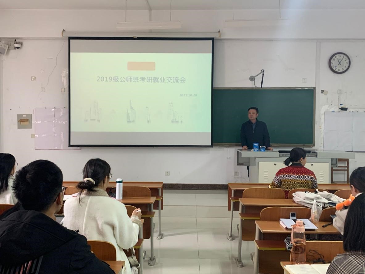 班会上,刘伟结合往届公费师范生毕业情况,围绕升学与就业展开了详细介绍。刘伟强调考研同学要抓住机会,根据自身的情况努力提升专业理论知识和个人素质,积极备考。针对就业同学,刘伟指出未来有无限的可能,在服务期间也要努力提升自己,正所谓“十年磨一剑”,功夫要下在平时,为将来的发展蓄力。最后刘伟祝愿各位同学前程似锦。