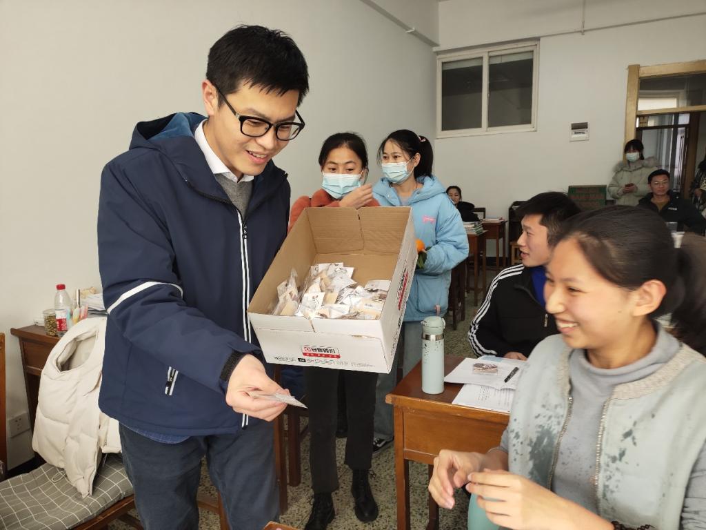 2018级辅导员田青老师来到考研教室,为2018级考研学子送去温暖与祝福。