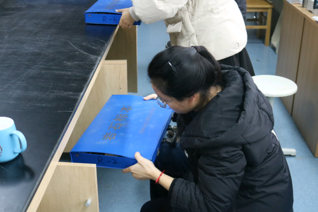 地理实验室,并协助同学们收拾整理地质实验室器材,方便同学们上课按需选取实验器材。
