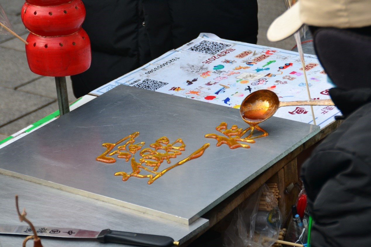 非遗探查小队前往日照市东夷小镇,拜访“糖画”手艺人郑师傅。