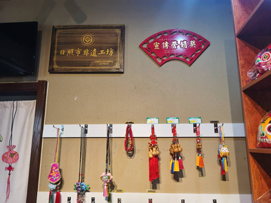但队员们在观察的过程中,发现工坊内鞋垫展品并不多,徐老师解释道随着近些年鞋垫的应用性下降,心灵手巧的手工艺人便创新性的将割花技艺应用于其他物品上。千缕丝线被银白色的绣花针编织成了象征强壮的布老虎、代表平安喜乐的平安锁、寓意马到成功的小马摆件等,成本会大大降低,但消费市场较大,愿意购买的人越来越多。如今,割花不但成为五莲传统文化的标志性符号,而且通过开发割花这一手工艺品,带动了一大批农村妇女从事割花制作,既增加了农民收入,助力脱贫致富,又带动了邻里和睦,促进了乡村振兴。队员们惊叹于割绣手工艺品做工精细、作品精美,纷纷挑选购买喜爱的工艺品。
