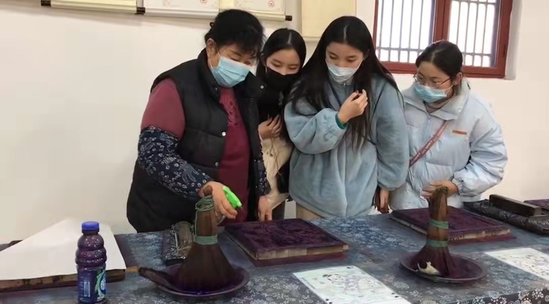 寻迹小队参观木板年画印制作坊。在这里,我们有幸遇到了著名老字号画店“东义顺”第十八世传人杨美杰师傅。杨师傅告诉我们,她自幼跟随父亲学习印刷,迄今已经从事木版年画印刷三十余年,因为受长辈的熏陶,她对这项传统的工艺有着深厚的感情,她将会把传承这项传统工艺作为自己毕生的事业,希望更多的人能够看到木板年画的美,感受到这项传统艺术的魅力。说完杨师傅向寻迹小队展示了彩色木板年画的印刷过程,在杨师傅的指导下队员们也体验了一把木版年画印刷的乐趣。对于这项传统技艺,实践队员充满了好奇和热情,看着最终出来的印刷作品,非常有成就感。