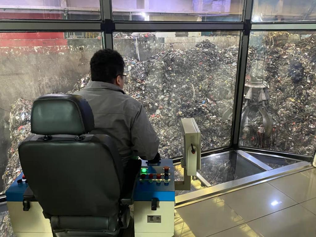 面对如此宏观的场景,实践队员的疑惑仍然很多,大家问到“这个垃圾堆放车间有多大?”讲解员说到“该车间高24米,长55.4米,一天能够处理垃圾1400吨到1500吨之间。这个机械爪不仅仅用来运输垃圾,还用来垃圾的搅拌以便更好地促进垃圾的发酵,从而达到更好焚烧的目的。”实践队员纷纷表示,垃圾分类应该从个人,社会,国家,多层次多方位进行,从而促进垃圾处理的效率。