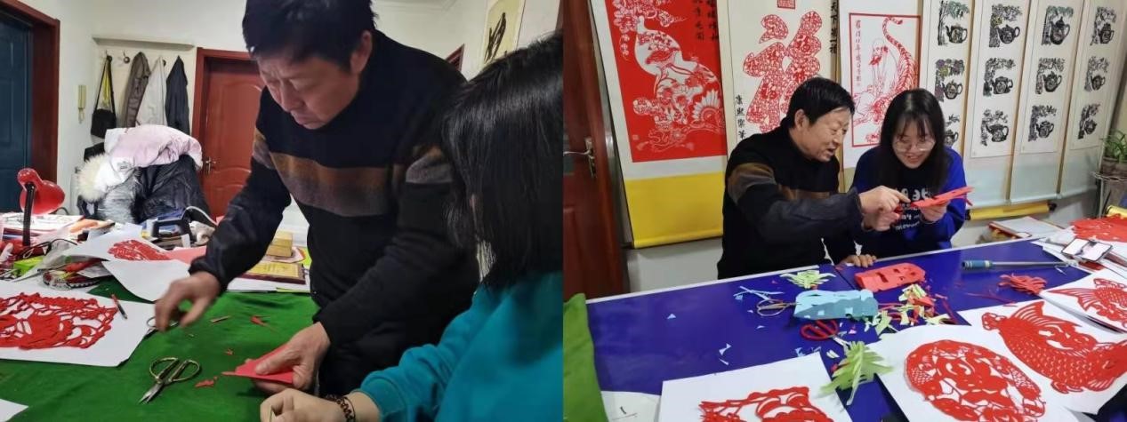 非遗探查小队拜访了胶州剪纸非遗代表性传承人迟炳杰老师,向他学习剪纸的相关知识并且学习剪纸的制作方法。