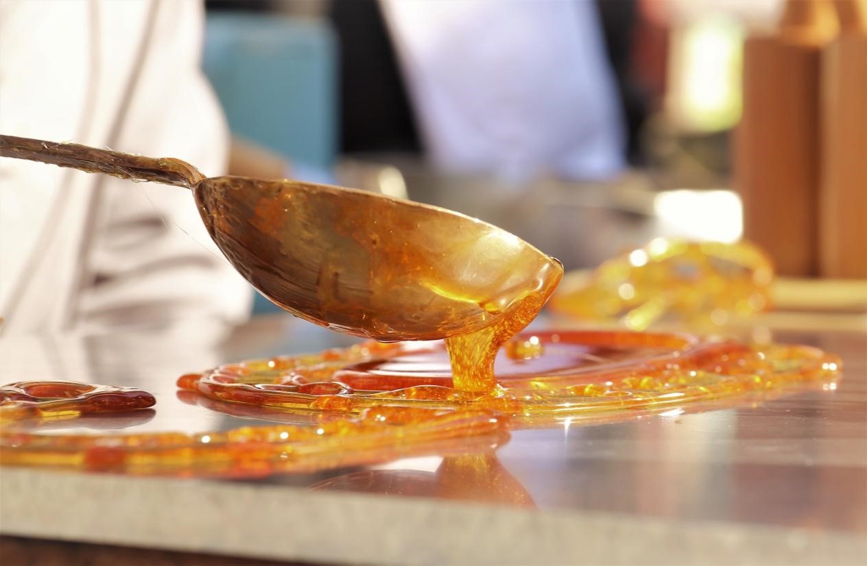 体验过了手工制作,也欣赏过了视觉与听觉的盛宴,也许一碗凉虾就是那前所未有的一股清流。宜昌凉虾制作技艺是湖北省非物质文化遗产。凉虾主要由红糖和大米做成,没有添加任何的食品添加剂,对身体也有一定的好处。我们跟随传承人袁鸿斌先生进入“郑信记”,一股奇特的清香味便勾起了我们对童年的回忆和对美好的向往。凉虾是宜昌人民心目中独有的文化符号,有着非常重要的地位。凉虾不仅仅是一种饮品,更多的承载了宜昌人民的一种乡愁,一种对家乡的依恋之情。我们感谢袁鸿斌先生一家不畏艰难险阻保存了这份可贵的非物质文化遗产,才让今天的我们的情怀有所安身之处。