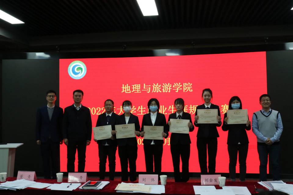 比赛中,7位地理学子侃侃而谈,畅所欲言。他们结合精美的答辩PPT展开对自己职业规划的讲述,并提出切实的完成方案,充分体现地理学子不惧艰难的干劲与对未来的展望。同时,评委们认真倾听,针对各选手的职业规划提出具体可行的建议,进一步引导同学们树立正确的成才观、择业观,帮助同学们找准职业定位。经过各位选手精彩纷呈的答辩,以及评委老师细致的点评和打分,最终黄晶蕊、王汉成荣获一等奖;王继骁、宋秀文荣获二等奖;吴恩雪、相英洁、张笑荣获三等奖。