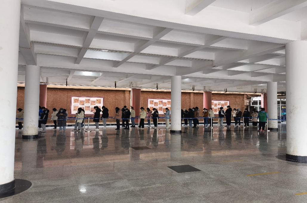 近日气温骤降,多名志愿者在寒风中积极组织同学们有序进行核酸检测。虽寒风瑟瑟,但志愿者们仍以极大的热情为同学们能够高效进行核酸检测而努力,在检测地点入口处为同学们服务。