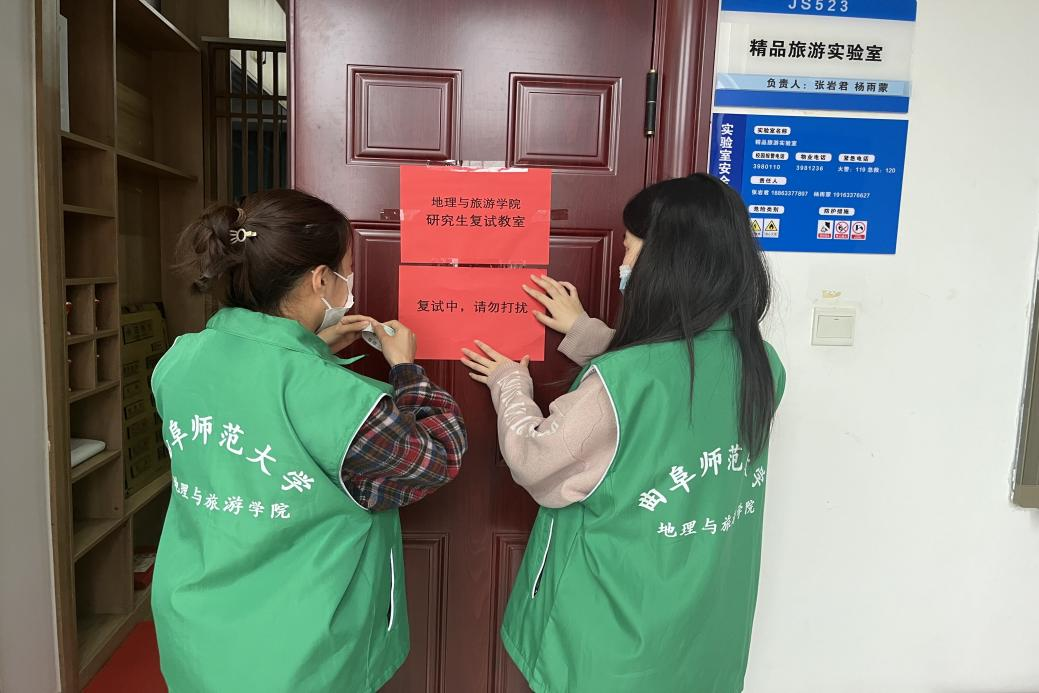 2018级辅导员田青通过入访宿舍、问卷星统计等形式,全面了解相关学生的复试需求,对考生信息进行了精准摸排和分类统计;及时组建考研复试服务先锋队,积极动员保研同学和学生党员参与,负责复试场地开关门、网络测试、过程服务等工作;组织学生会志愿者负责考研复试场地卫生维护、日常消杀等,为同学们的复试全面保驾护航。他强调,面临疫情防控特殊事情的考研复试服务,要做到一位志愿者专门负责一个教室,确保零失误,一切以保障同学们顺利复试为重。