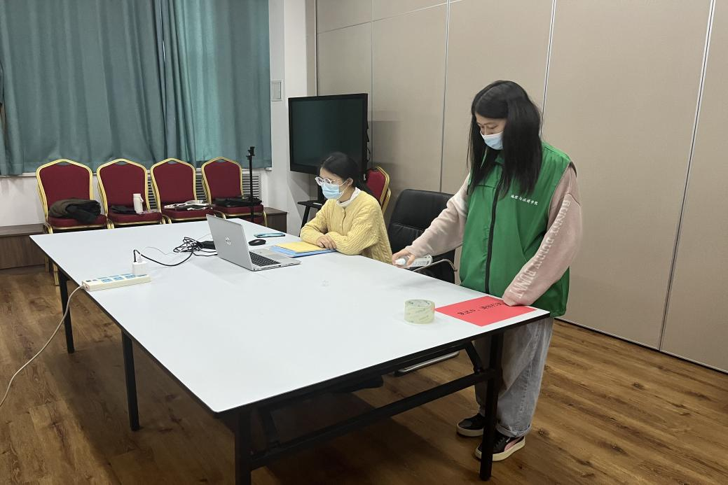 “本以为只能在宿舍进行复试,但学院在这个特殊时期解决了我们当前最关心的场地问题,而且安排了专门负责开关门、提供各种服务的志愿者,引导我们提前到教室熟悉环境,调试设备,这样顿时感觉心里更有底儿了。”前来调试设备的复试同学说道。