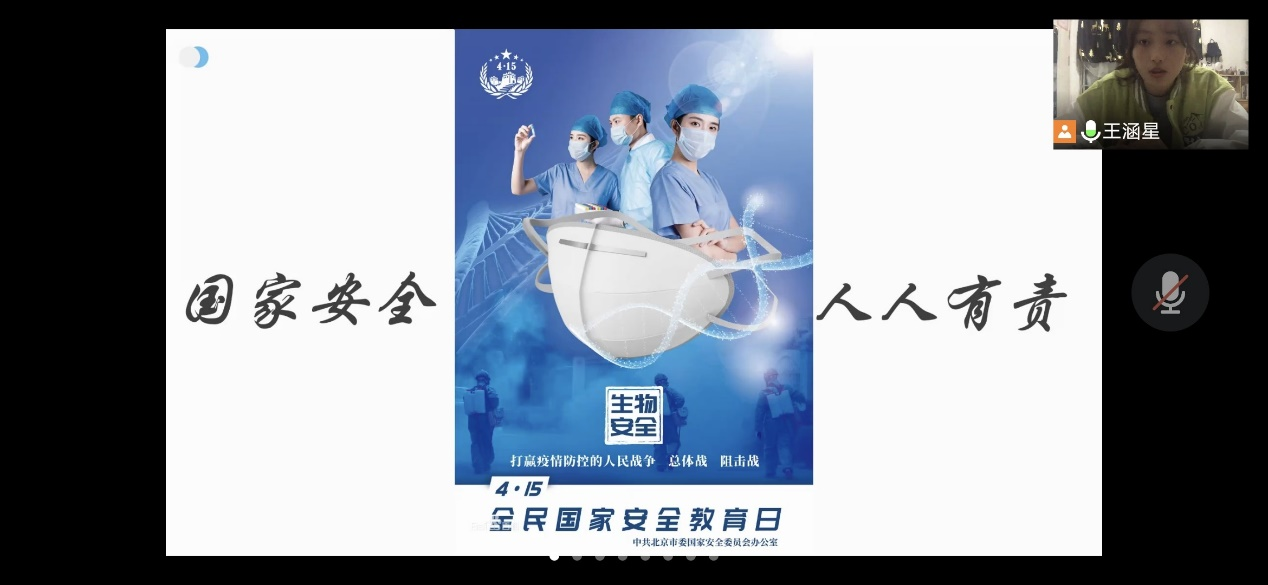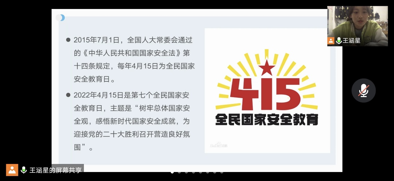 开展国家安全教育日线上宣讲活动。宣讲由学院团委副书记王涵星主讲,2020级、2021级全体学生参加。