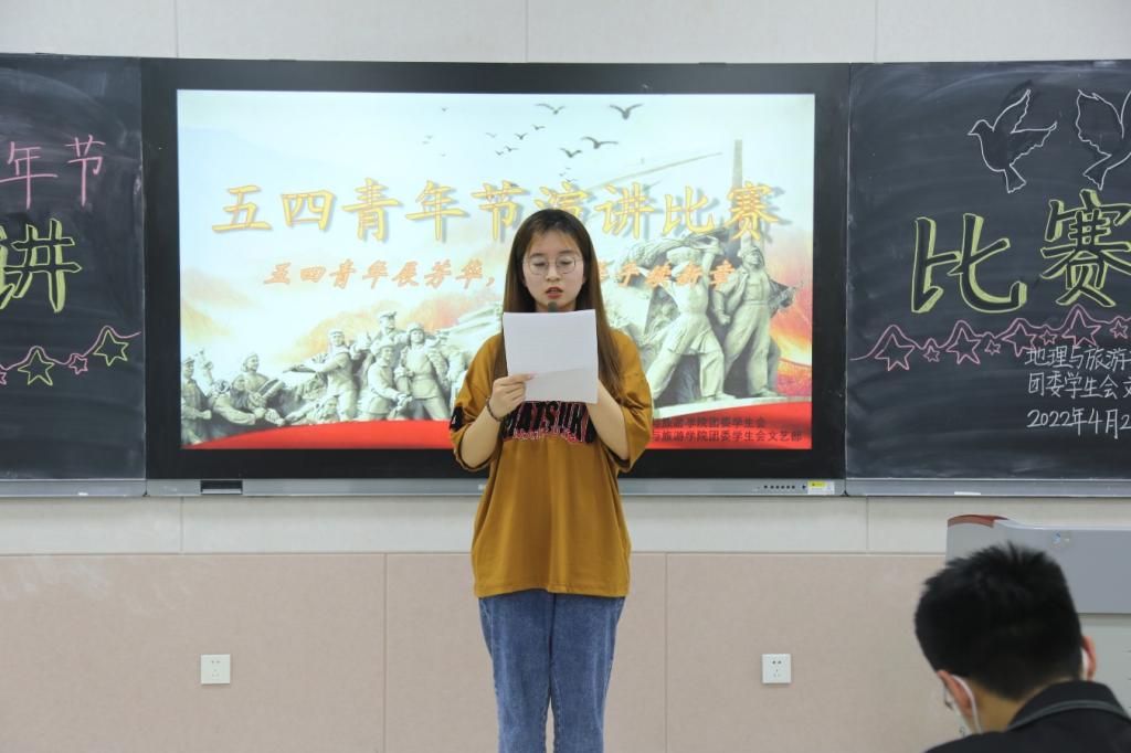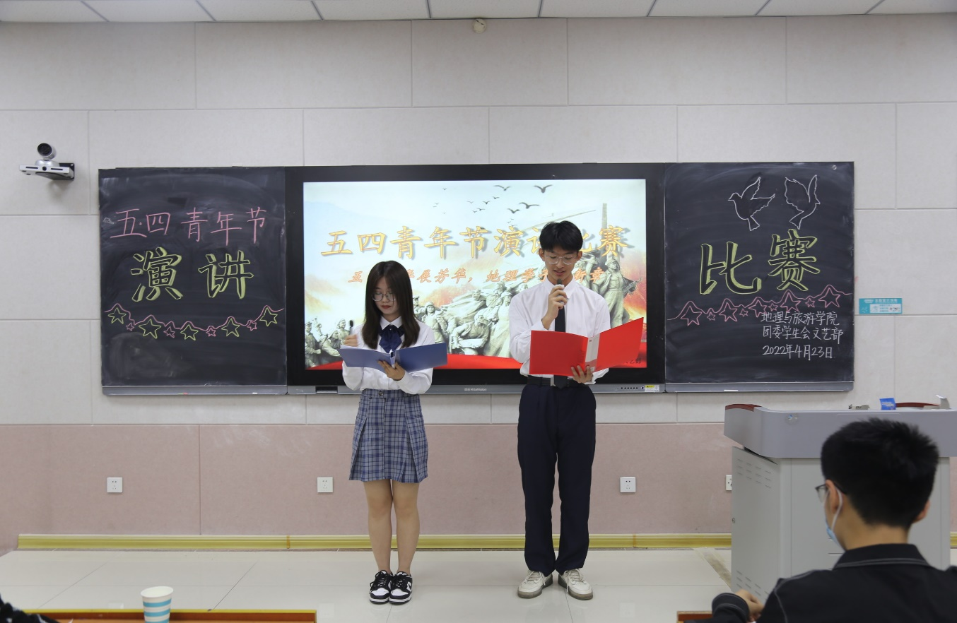 于s206举办“五四青年展芳华,地理学子续新篇”演讲比赛。