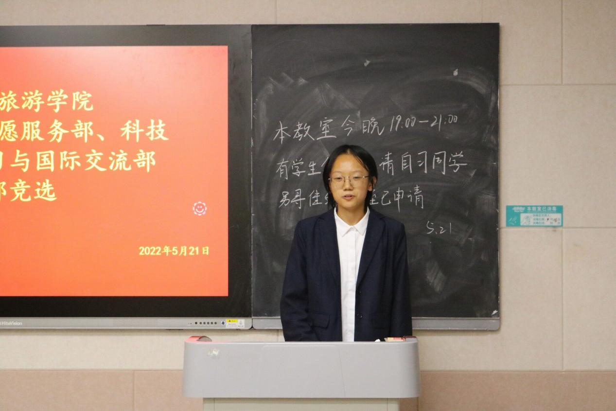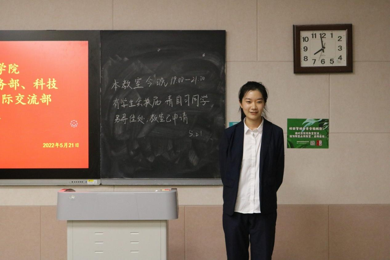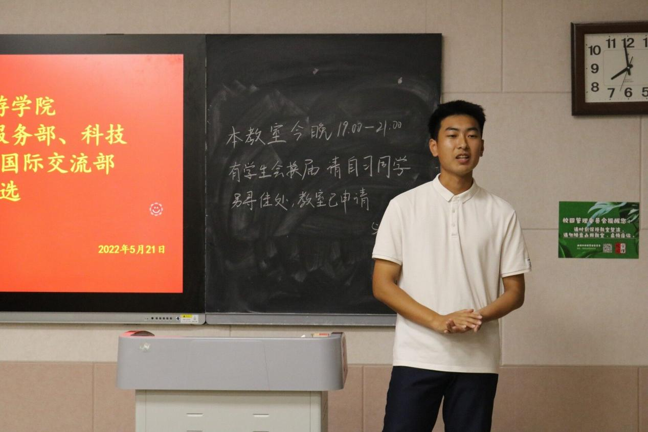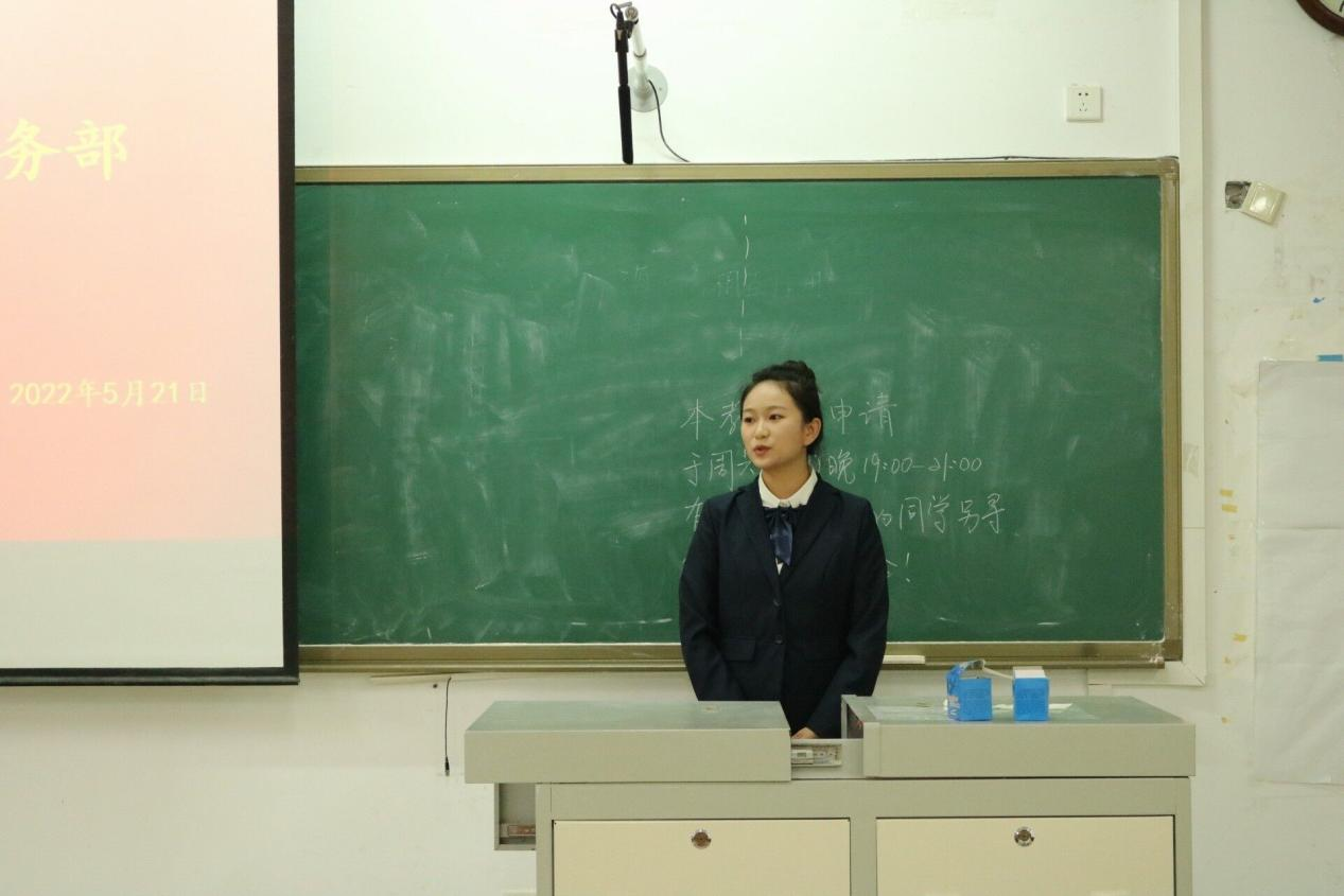 举行2022届团委学生会副部长换届竞选答辩会。主席团成员和团委学生会各部部长担任评委。