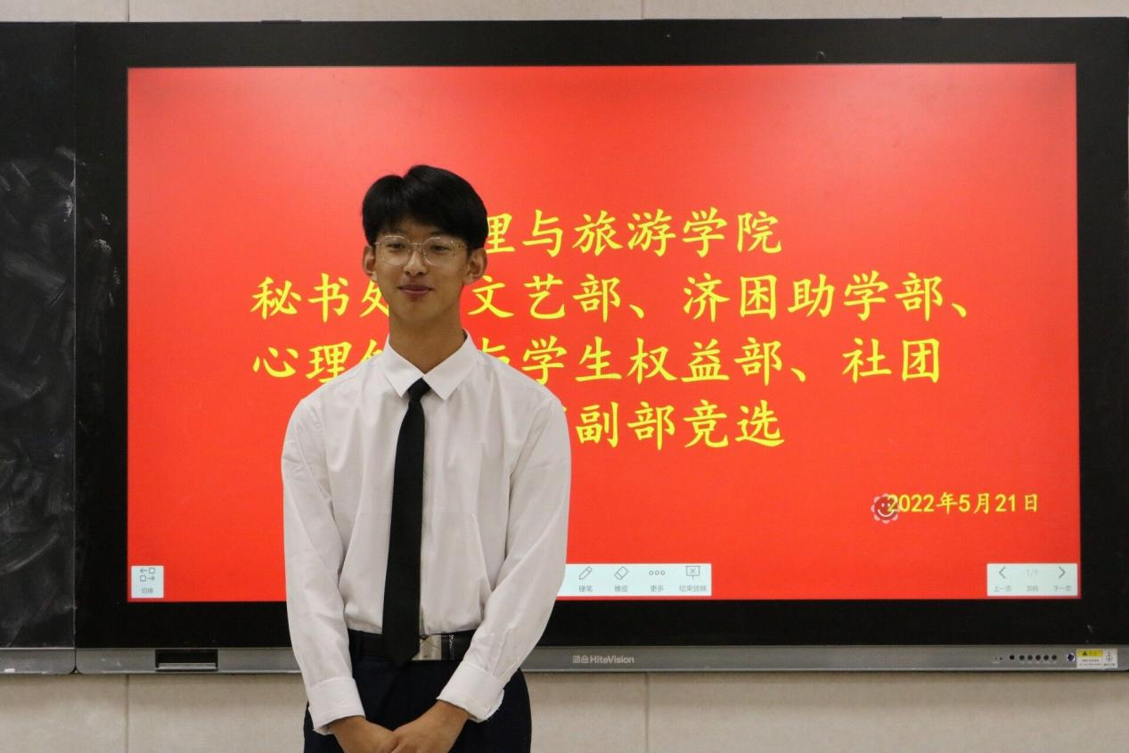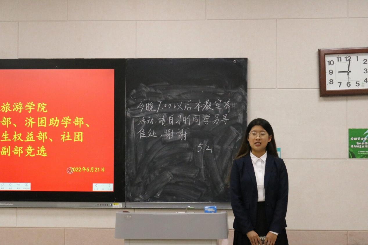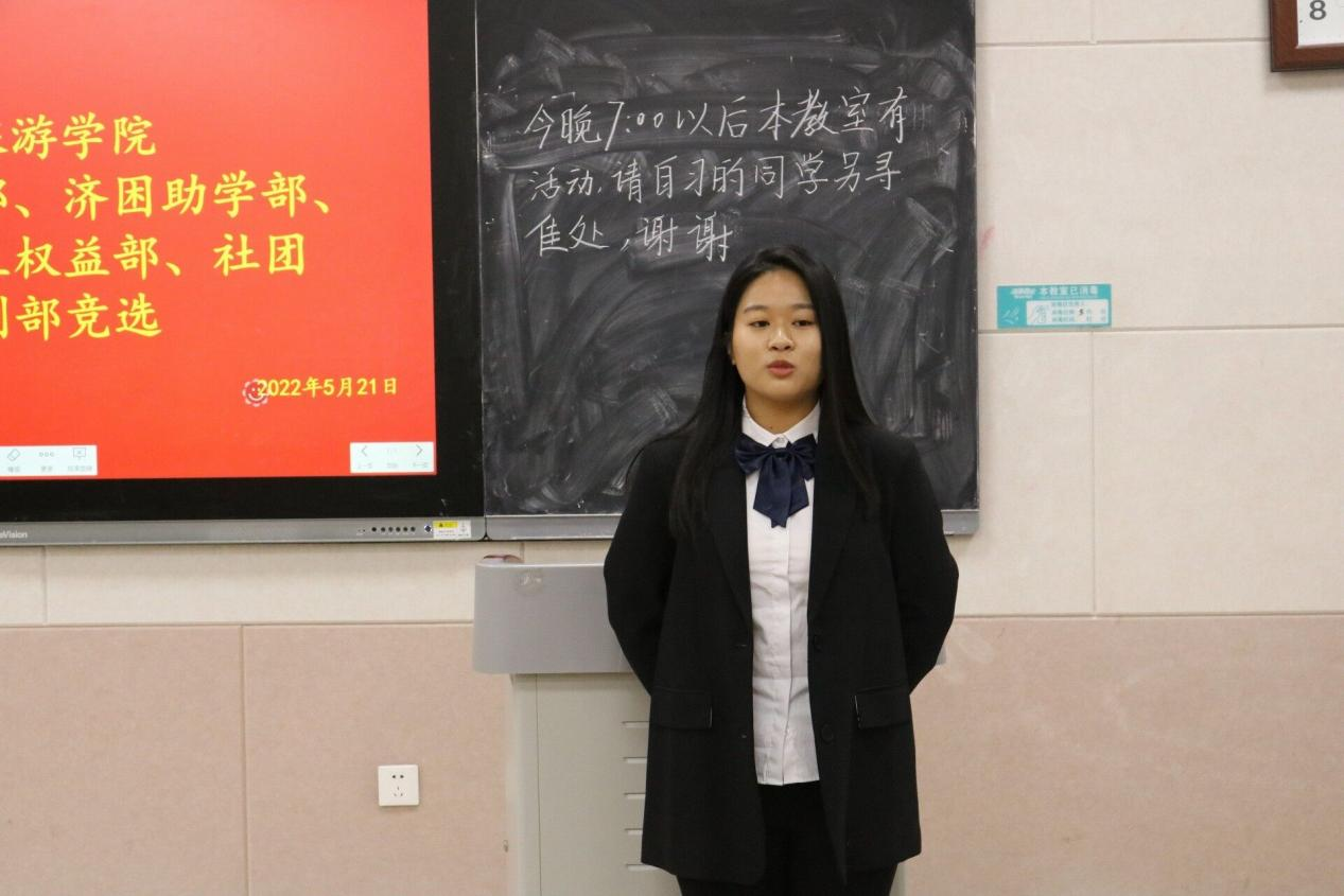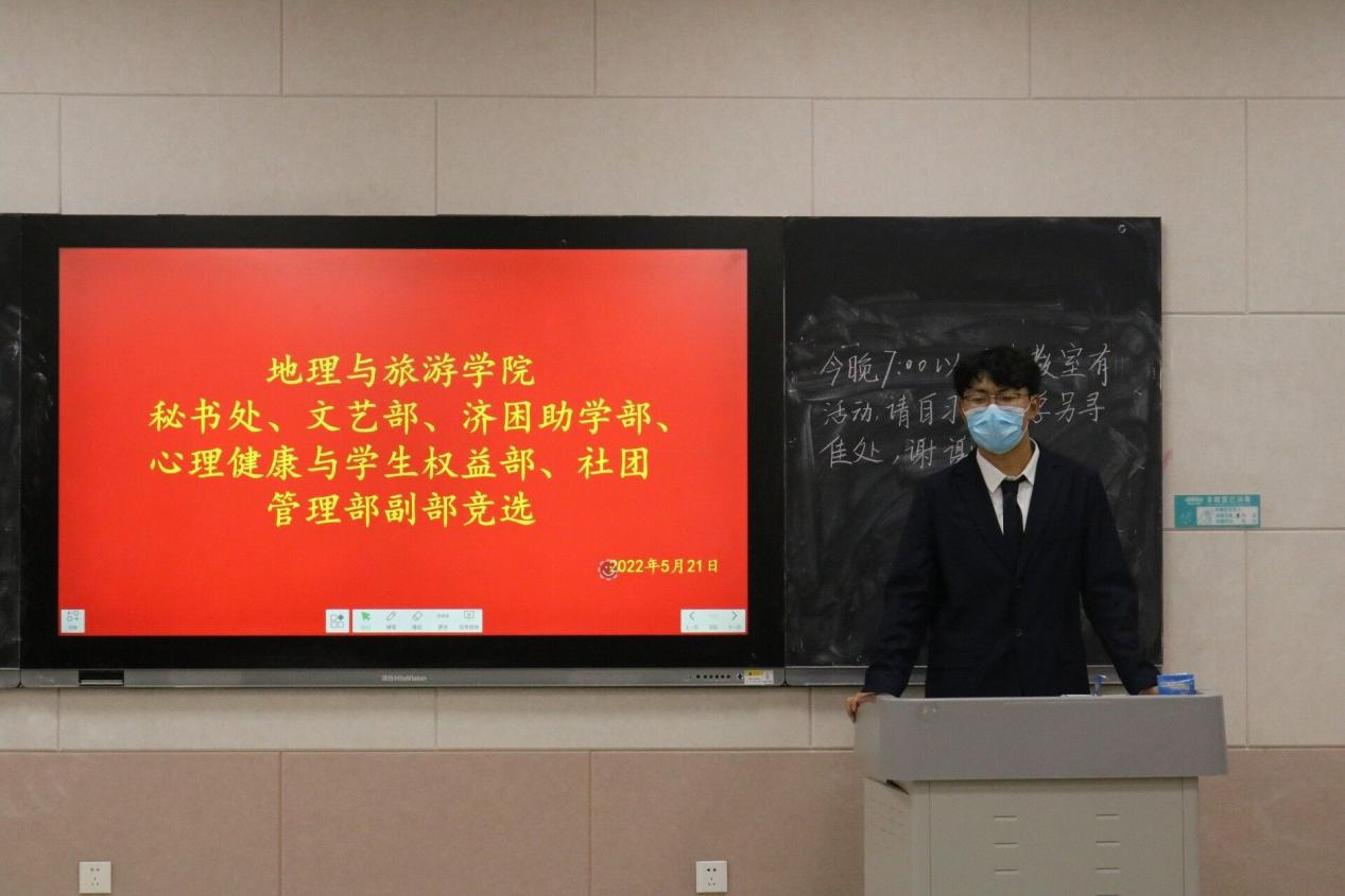 举行2022届团委学生会副部长换届竞选答辩会。主席团成员和团委学生会各部部长担任评委。
