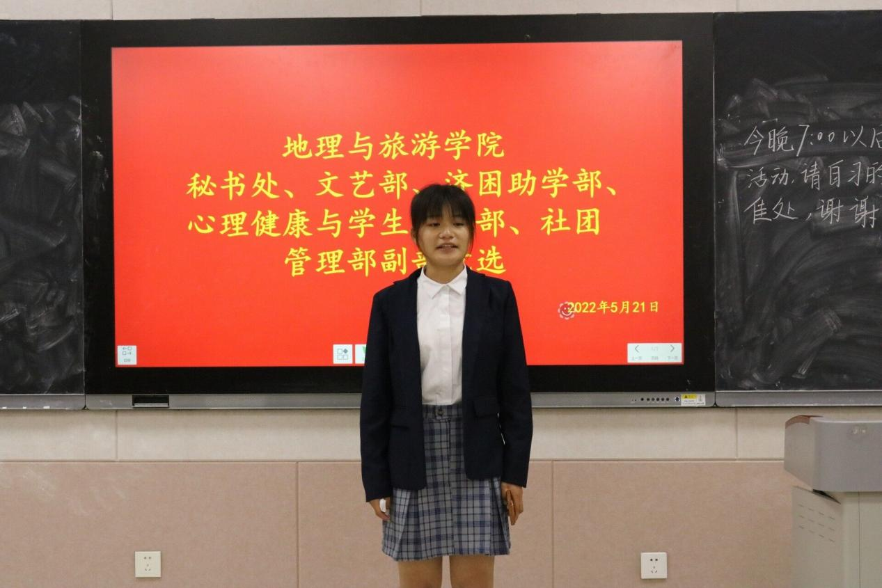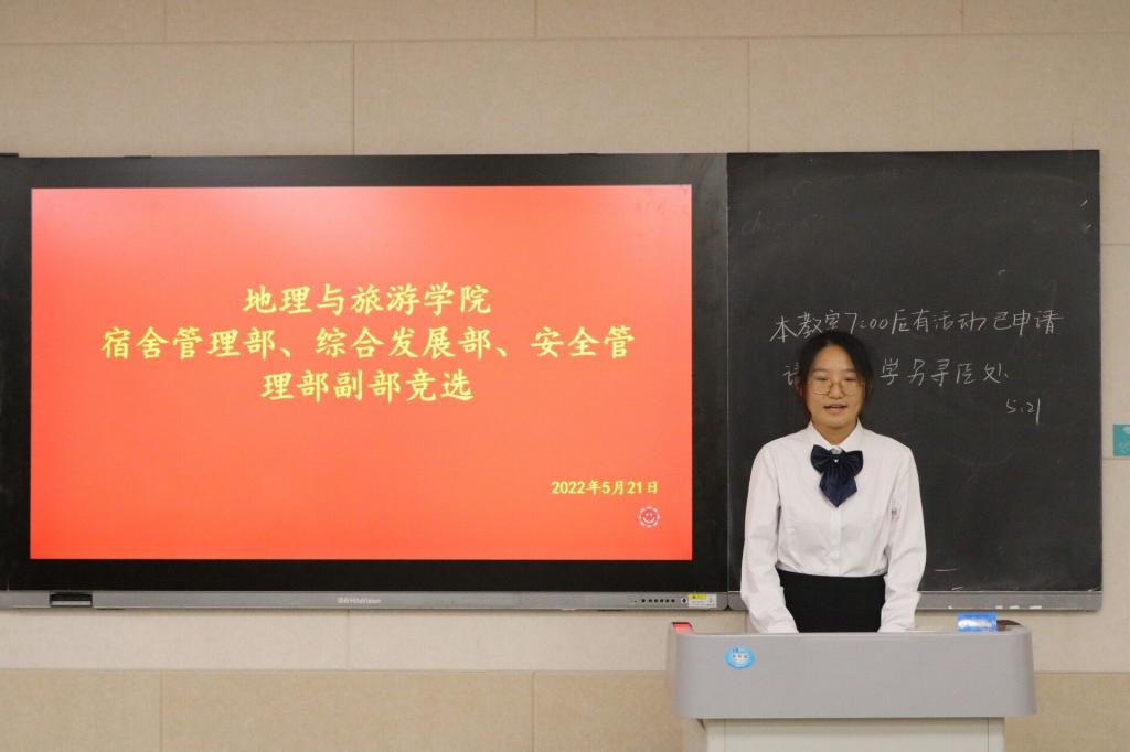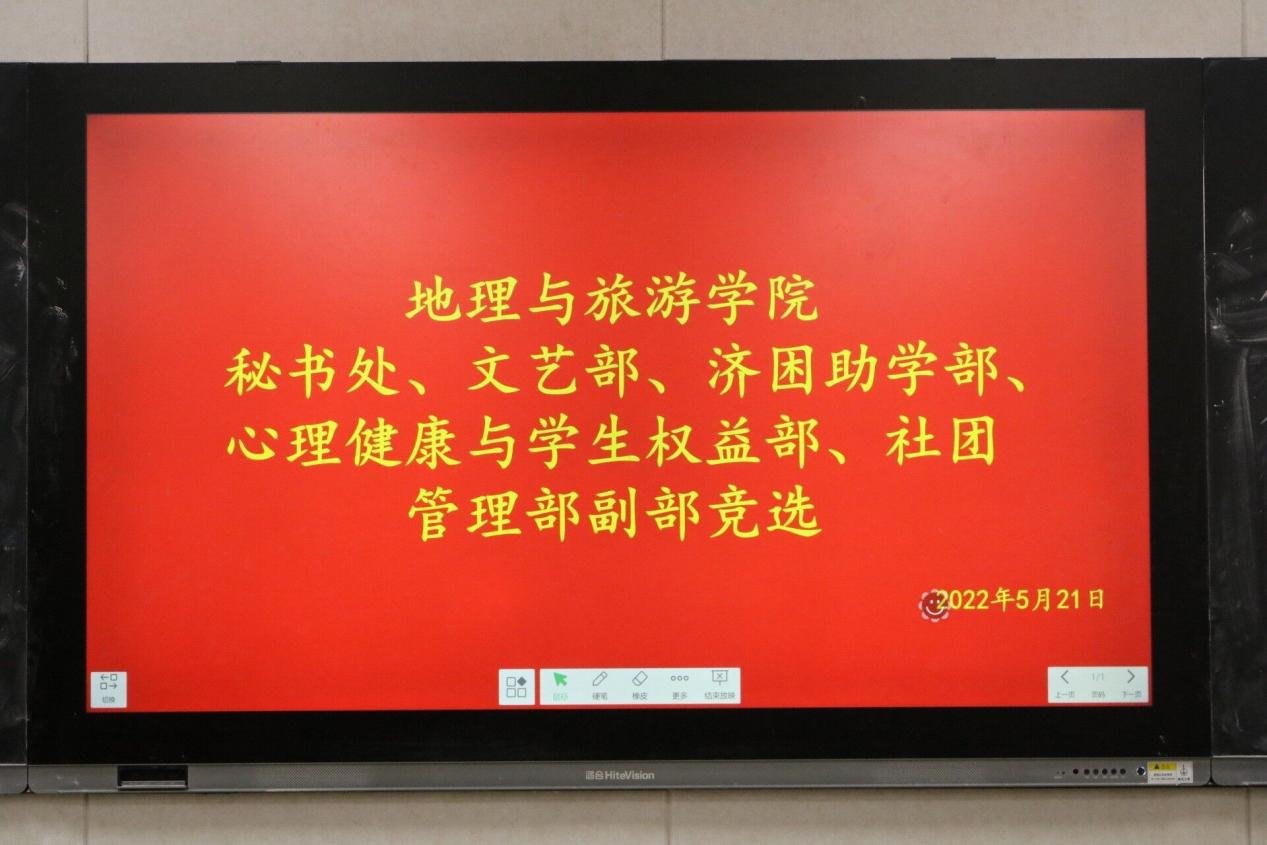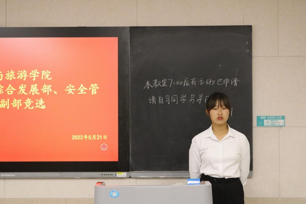 举行2022届团委学生会副部长换届竞选答辩会。主席团成员和团委学生会各部部长担任评委。