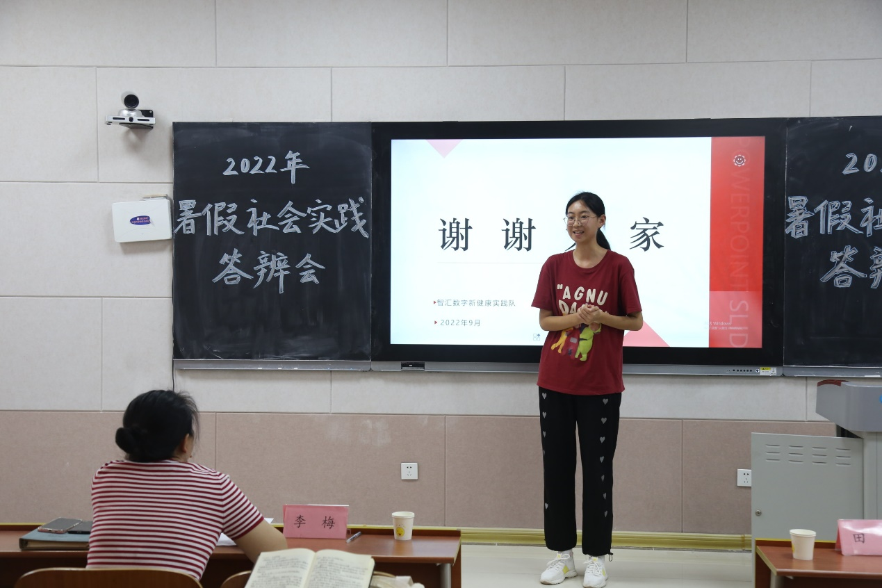 于S203召开暑假社会实践答辩会。学院团委书记李梅、2020级辅导员张乃宁以及2021级辅导员田青出席担任评委,各社会实践队伍代表、2021级班委代表及2022级部分同学参加。