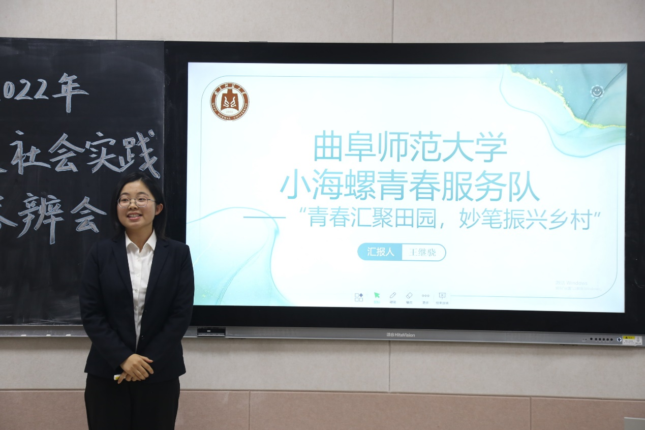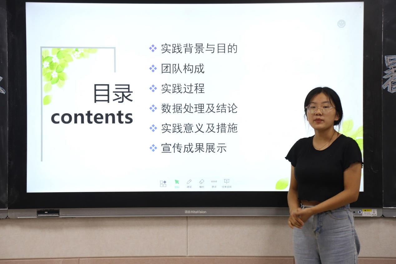 答辩会上,李梅向与会人员介绍本次答辩会的意义所在,强调要向优秀队伍学习经验。她要求大家要通过本次答辩会学会总结社会实践的宝贵经验,向先进队伍看齐,争取在以后的社会实践活动中创造更好的成绩。随后11支社会实践队伍先后进行答辩,各实践队伍从队伍组成、实践背景、实践目的、实践成果等方面进行讲解,评委们就各队伍的实践主题、实践形式及过程、实践成果等方面做出提问和点评。针对评委的问题,各团队代表沉着冷静、条理清晰。