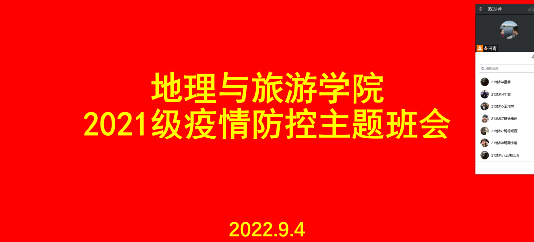 会上,各位辅导员老师全面详细地传达了疫情防控工作安排和要求,对重要内容做了深入说明,强调疫情防控形势严峻,同学们要提高思想觉悟,增强个人防控意识;结合属地疫情防控政策,解读了当前学校的规章管理制度,呼吁同学们积极配合做好疫情防护工作,保护好自己的身体健康。疫情就是命令,防控就是责任;强调要严格遵守学校疫情防控工作要求,配合落实学校学院各项工作,及时查看通知,按时进行核酸检测,确保班级疫情防控工作做实做细。会上,传达学习了近期校内外因违反防疫规定违纪受处分的案例,希望同学们引以为戒,力行疫情防控,戴口罩、勤洗手,严格遵守两点一线原则,做到非必要不外出,自觉落实常态化疫情防控措施。