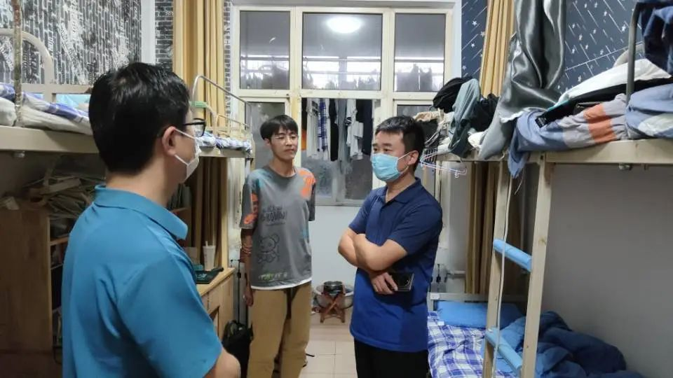 关怀入寝,温暖入心。刘伟详细询问同学们的学习及生活状况,鼓励各位学子学业生活两手抓,用功学习,学好专业知识,提升个人价值,用心生活,宿舍定期通风,注意个人卫生,打造舒适整洁宜居的生活环境。田青细心叮嘱同学们近日气温骤降,及时增添衣物,预防感冒。安全无小事,生命重如山,宿舍安全是重中之重。刘伟提醒同学们要注意宿舍用电安全,避免发生用电起火等情况,并对宿舍园区进行安全隐患大排查,进一步加强宿舍安全管理,防患于未然。他严把防疫关,强调当前疫情形势严峻,同学们要严格遵守学校疫情防控工作要求,严格要求自我,提高思想觉悟,增强防控意识,力行疫情防控。戴口罩、勤洗手,严格遵守两点一线原则,做到非必要不外出,自觉落实常态化疫情防控措施。