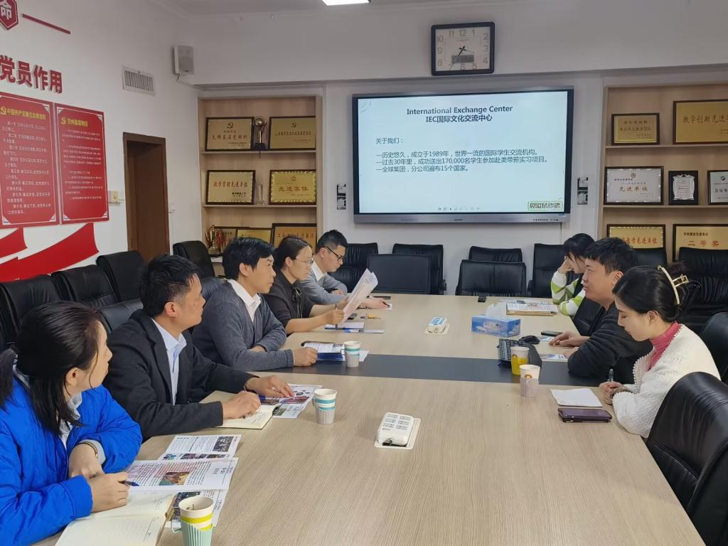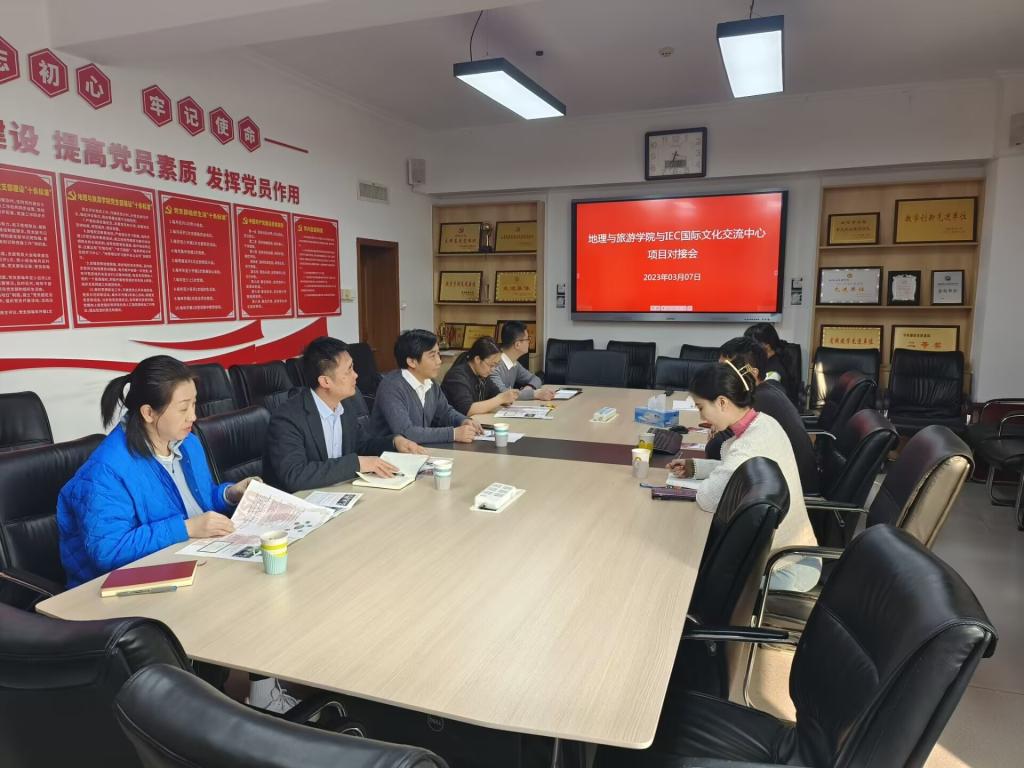 与IEC国际文化交流中心组织开展项目对接会。IEC国际文化交流中心经理叶德舜、学院党委书记苏占兵、副书记刘伟、旅游管理系主任张瑜、学院团委书记李梅、辅导员田青和张乃宁参加对接会。
