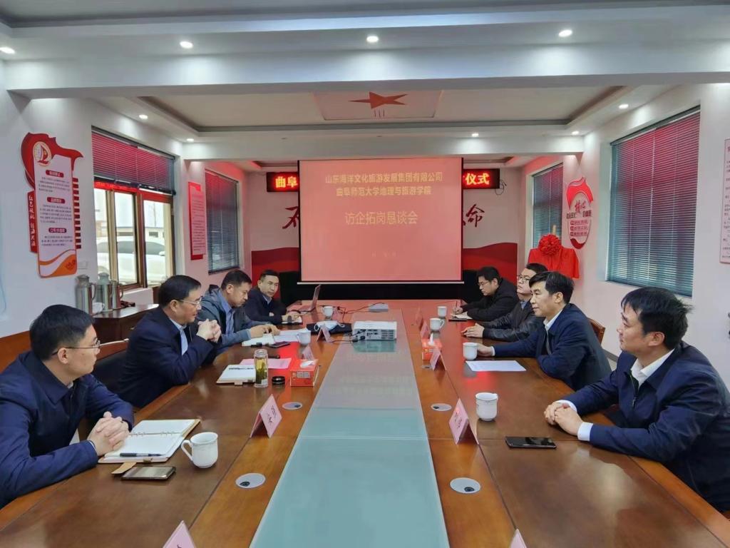 党委书记苏占兵;山东海洋文旅集团党委委员、副总经理韩秀星;山东海洋文旅集团廒头水产品供应链有限公司经理安强;山东海洋文旅集团廒头水产品供应链有限公司副经理秦绪剑、相恒学;学院党委副书记刘伟、学院国土空间规划研究中心主任刘坤、学院团委书记李梅等参加了签约揭牌仪式,并在揭牌仪式后进行了访企拓岗恳谈会,对接人才培养,分析人才需求,邀请企业来校组织校园招聘。