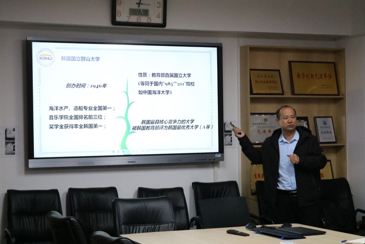 会上,尹华东老师向同学们介绍韩国各大学的建校历史、师资力量、地理位置、专业设置等,让同学们对韩国的大学有一定了解。同时,他还介绍出国需要花费的费用以及各学校的奖学金政策进行了解读。