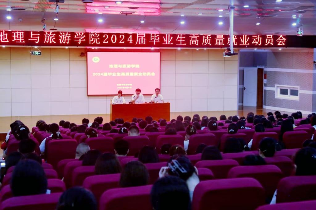 于图书馆报告厅召开2024届毕业生高质量就业动员会。学院院长张全景、党委副书记刘伟出席会议,2020级全体学生参加,辅导员张乃宁主持会议。