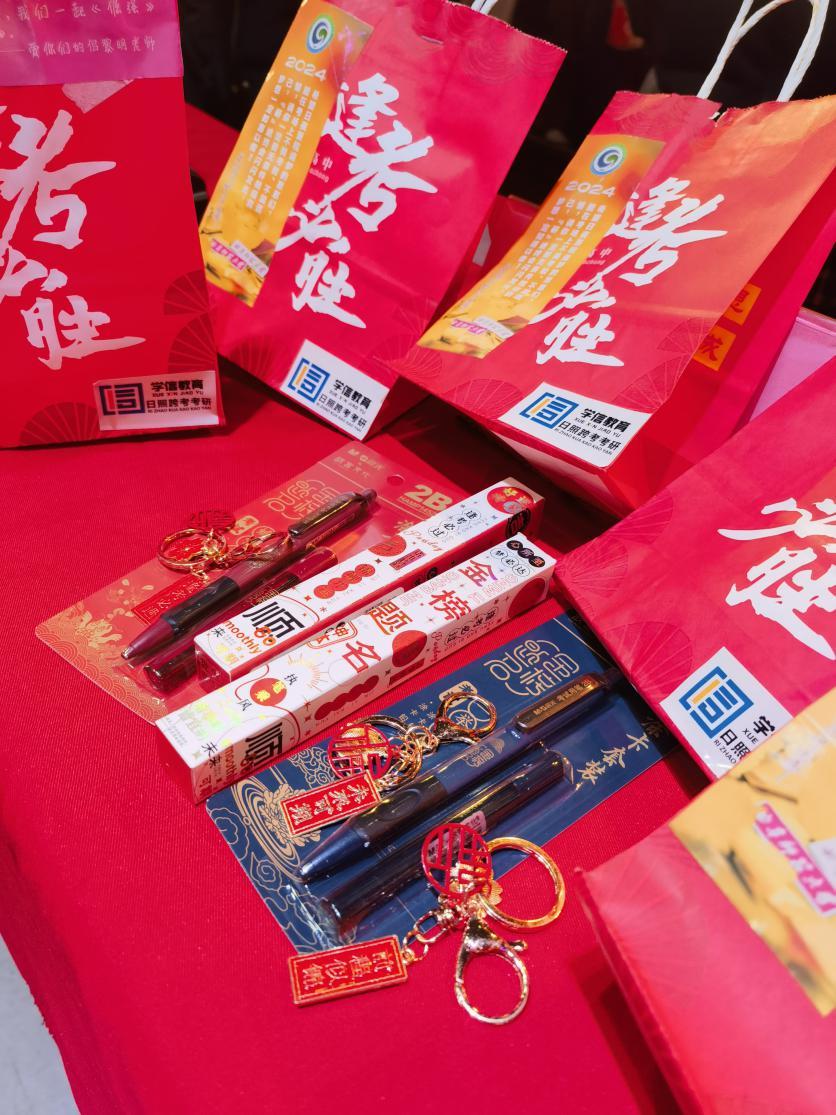 “逢考必过”加油包上印有两院院徽、毕业生辅导员的专属寄语和“逢考必过”的字样,打开加油包,里边有三样东西:一只印有“金榜题名”字样的中性笔,寓意顺顺利利、金榜题名;“蟾宫折桂此时有,鱼跃龙门在今朝”,一套写满“蟾宫折桂”的考试专用涂卡笔,祝愿考研学子登科及第、榜上有名;缀满“逢考必过”、“未来可期”和“前程似锦”的钥匙扣凝聚着最诚挚的祝福。在“逢考必过”加油包里的每一件物品都包含着特殊的含义。