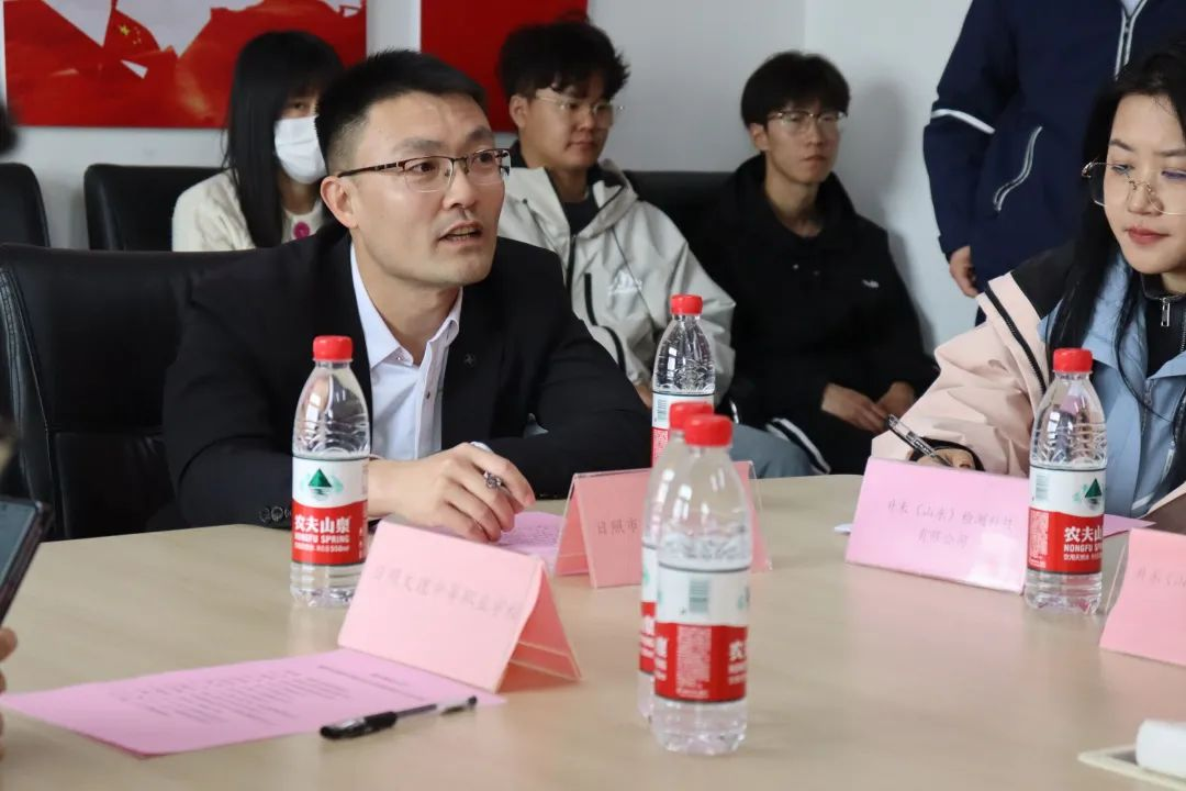 毕业生积极就业;青岛大润丰研学旅行有限公司董事长逄金华鼓励学生积极投身实践,从实习中积累经验和教训;日照文理中等职业学校董事长康从涛介绍了该校的机构设置、专业设置情况,详细交流了该校对教师及各类工作人员的需求情况;大圣光华教育集团人资经理于文颖则介绍了本企业发展情况和就业招聘情况;日照市上岸教编培训中心刘永家介绍了该企业全日制教师编培训和岗位招聘需求;升禾(山东)检测科技有限公司王静充分肯定了电影天堂