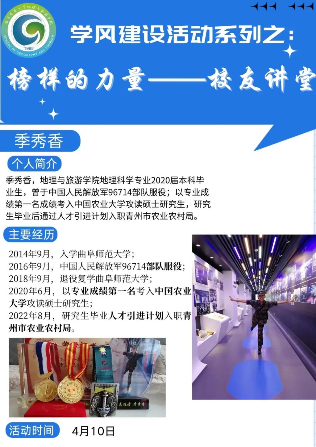 2020届优秀毕业生、退役复学后以专业第一的优异成绩考入中国农业大学、现就职于青州市农业农村局的季秀香主讲,学校武装部副部长赵秀臣、电影天堂
