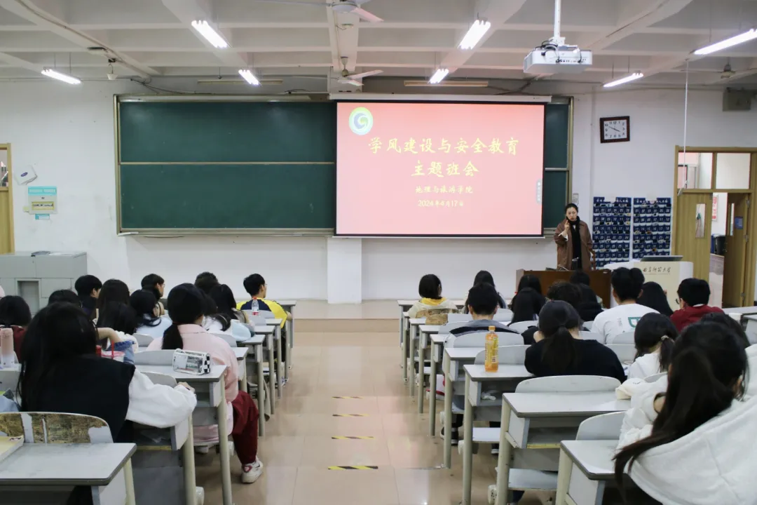 于A106召开了学风建设与安全教育主题班会,本次会议由2023级辅导员李梅主持,2023级全体同学参加。