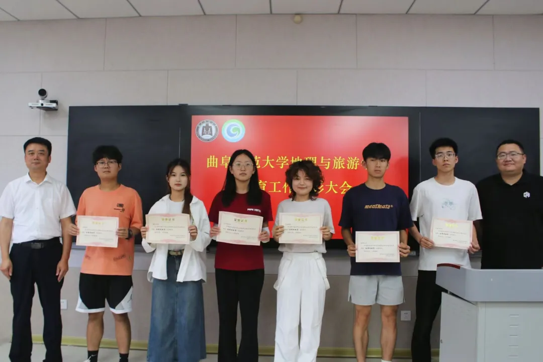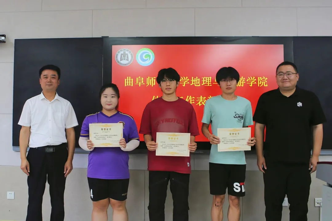 随后,运动员代表裴哲回顾本次运动会精彩瞬间,他强调团结进取、奋勇拼搏是取得优异成绩的良方,并对学院的大力支持和老师的辛勤付出表示感谢。贾志浩作为球队代表,以他所在的地理男排队为例,分享球队的建设及管理经验。他表示,建立起一个积极向上的队伍,需要球队所有成员明确目标,同心协力,坚持训练,超越自我。郭兴哲宣读表彰名单,鼓励受到表彰的同学珍惜荣誉、再创佳绩。刘伟、陈鑫分别为获得“体育之星”“体育先进个人”“体育先进集体”等奖项的先进集体和个人颁发荣誉证书并合影留念。最后,李欣瑞总结近期体育工作,肯定近期工作佳绩,提出不足和问题,并对未来工作作出规划。