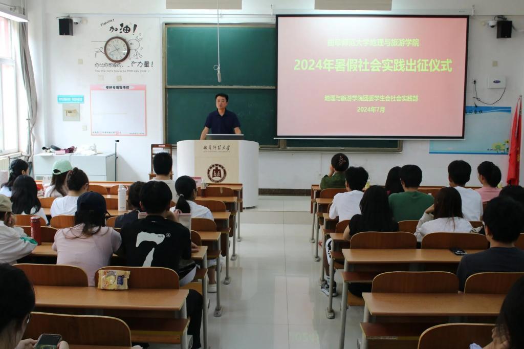 于S103举行2024年暑假社会实践出征仪式。本次活动由团委学生会社会实践部承办,学院党委副书记刘伟、团委书记李梅出席,各社会实践团队成员积极参加。