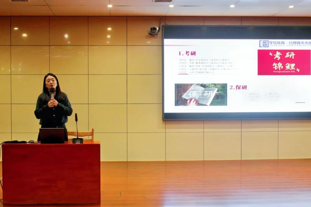 会议伊始,翟晓蕾针对考研学生是否考数学的疑问进行了解答,她仔细比较二者的区别,强调选择考数学能够选择更多的高校,能帮助同学们进入更好的平台。她提醒同学们要提前了解数学难度,意识到复习策略的重要性并根据自身情况选择合适的复习方法。除此之外,翟晓蕾还对备考全过程做了详细介绍,帮助同学们深入了解考研的流程与内容。
