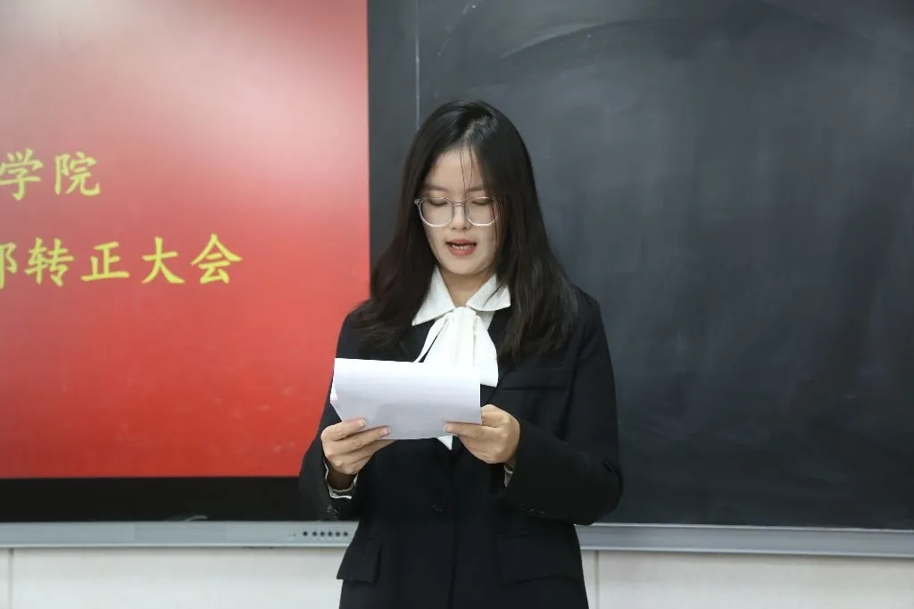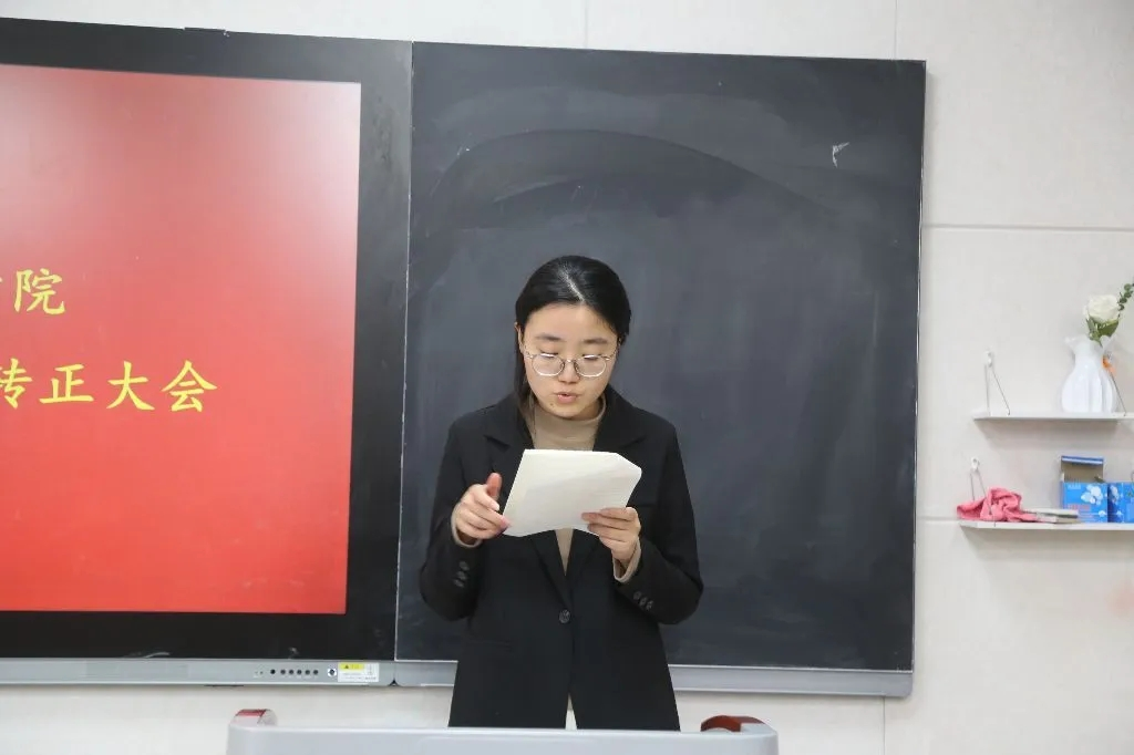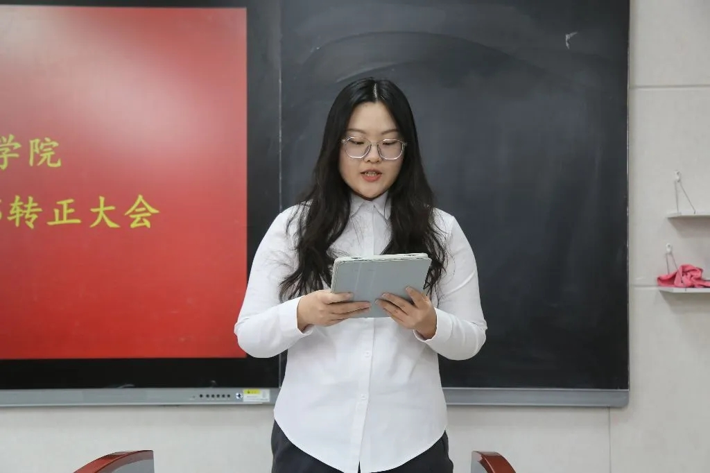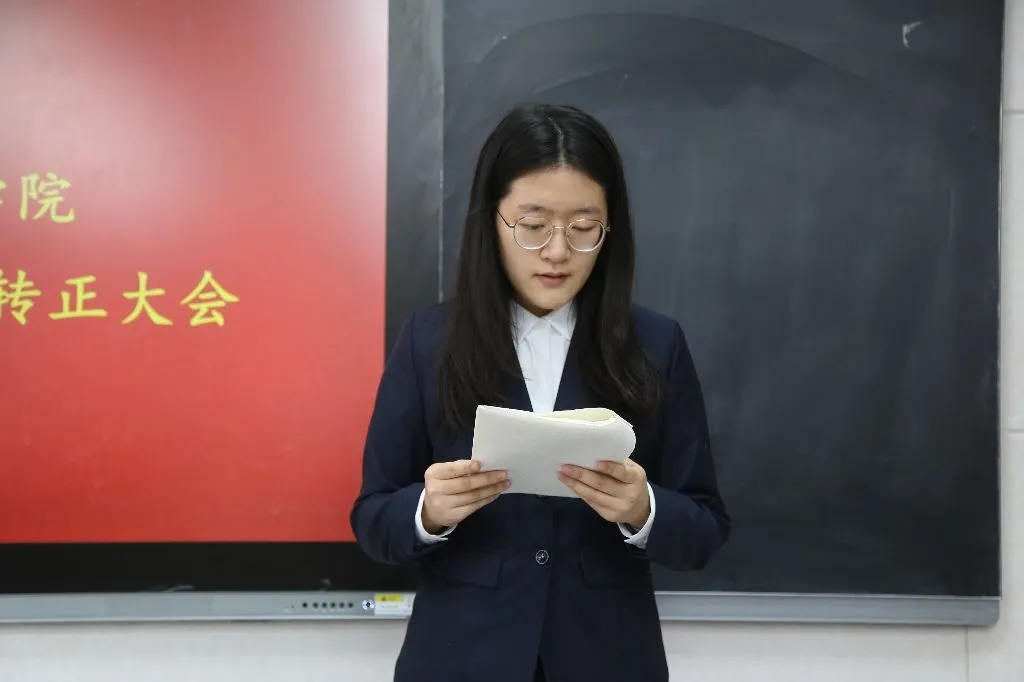 本科生第一党支部于S204召开党员转正大会,会议由本科生第一党支部书记田青主持,学院党委副书记刘伟列席,支部全体党员参加。
