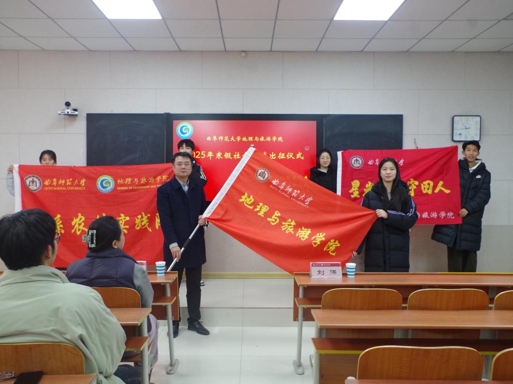 务必将安全放在首位,同时要充分利用专业知识,紧密结合国家重大战略,如黄河流域生态保护和乡村振兴等,深入挖掘社会问题并探索解决途径,做好实践与专业学习、大创项目的衔接,切实提高自身对社会的认识与实践能力。随后,“文化守望者实践队”的王中贞分享了自己对社会实践安全的认识及自我防护的决心,进一步强化了同学们的安全意识。最后进入授旗环节,刘伟为各社会实践队伍授旗。队旗不仅是团队的象征,更承载着学院的期望与祝福,激励着学生们在实践中勇担使命、积极探索。