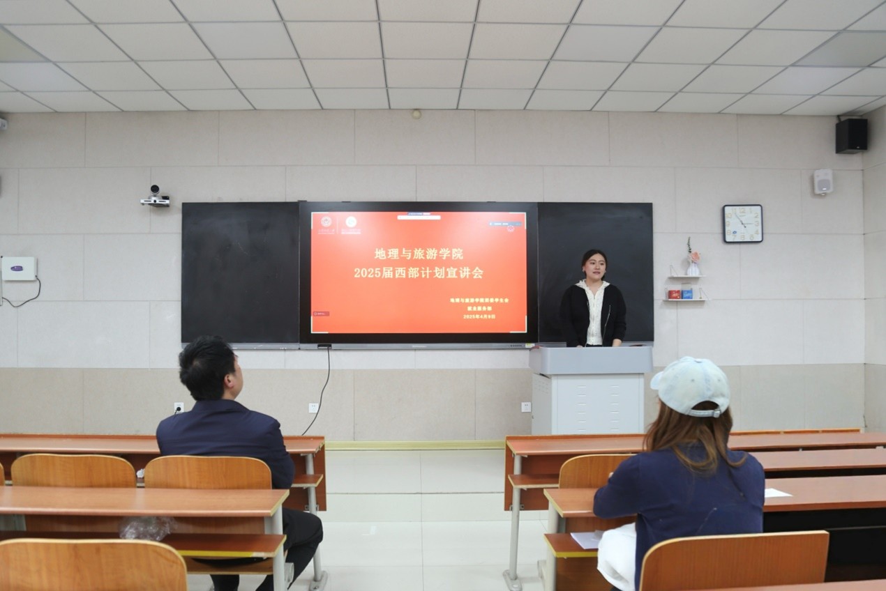 于S207召开2025届西部计划宣讲会。本次会议由团委学生会就业服务部承办,2021级辅导员董青主讲,党委副书记刘伟、2023级辅导员李梅出席会议,优秀志愿者代表姜伟、阿依木尼莎·玉苏甫发言,2021级部分学生线上线下参与会议。