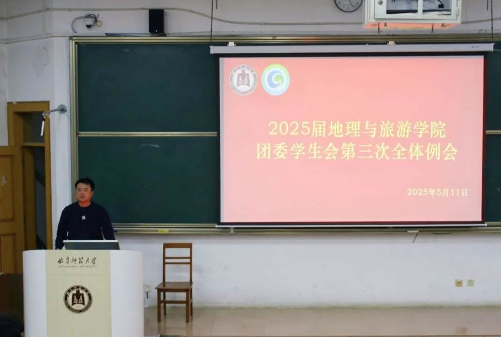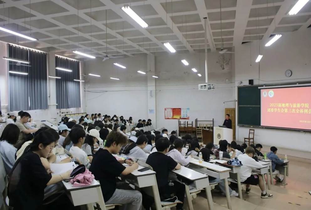 于E101召开2025届团委学生会第三次全体例会。学院党委副书记刘伟出席,院学生会主席尹新颖主持,2025届团委学生会全体成员参加。